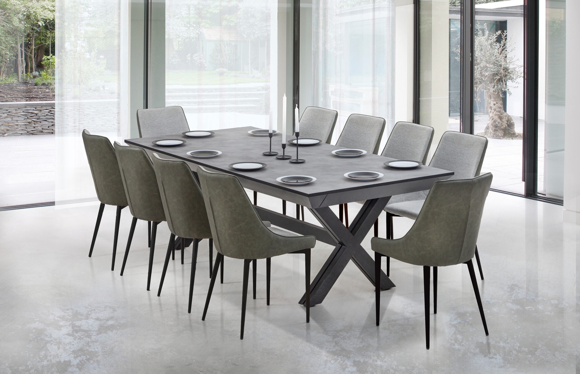 פינת אוכל יוקרתית, מושלמת, דגם גמבו, כוללת שמונה כסאות תואמים ואיכותיים.